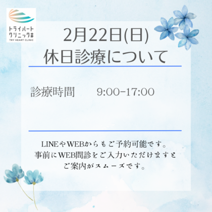 2月22日(日)は、中野区休日当番医制度に伴い診療を行います。